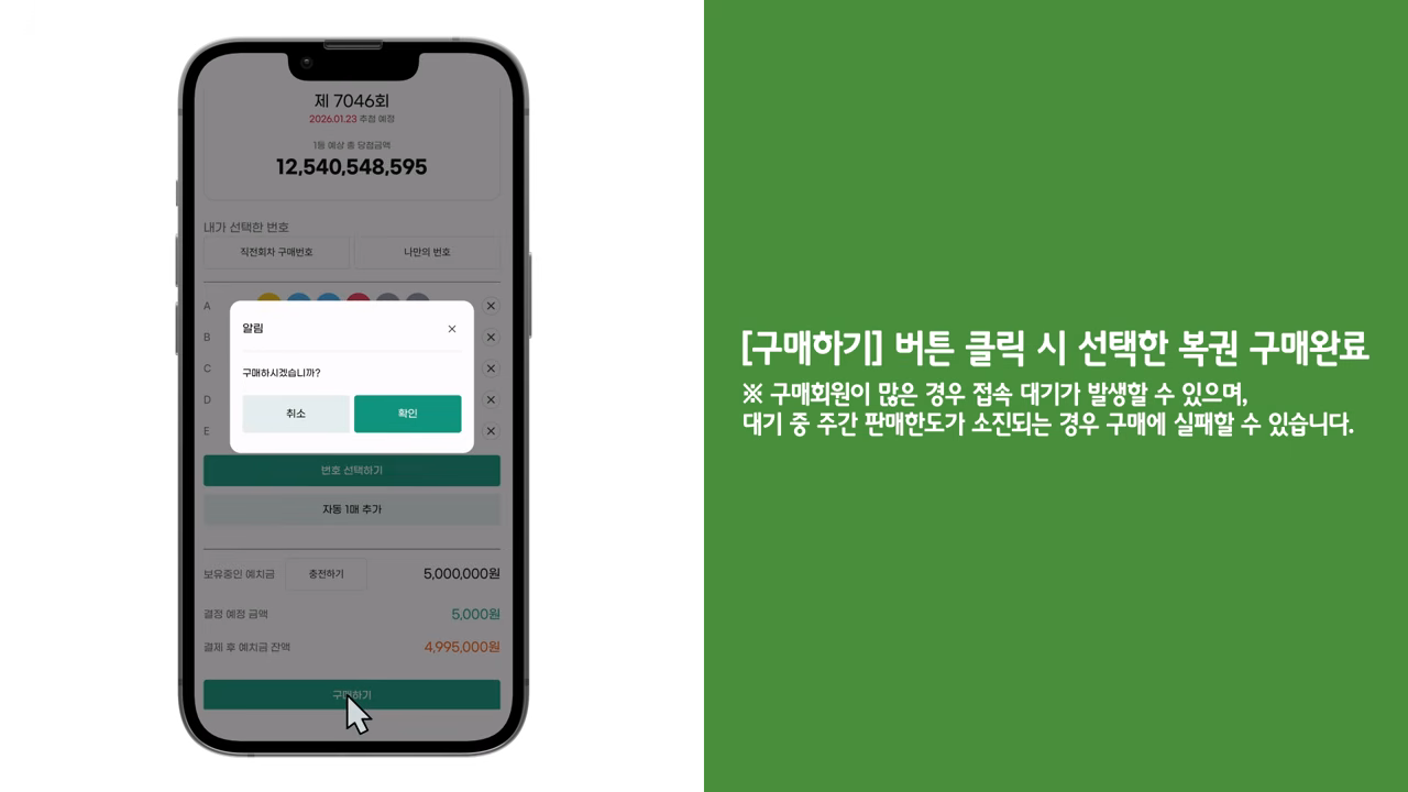 구매 내역은 자동 저장되며 종이 복권 분실 걱정이 없습니다.
