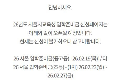 2026학년도 서울 입학준비금은 초·중·고 신입생 학부모의 부담을 덜기 위한 지원금입니다. 지원금은 제로페이 모바일 포인트로 지급되며, 입학 준비에 꼭 필요한 물품을 서울시내 제로페이 가맹점에서 자유롭게 사용할 수 있습니다.