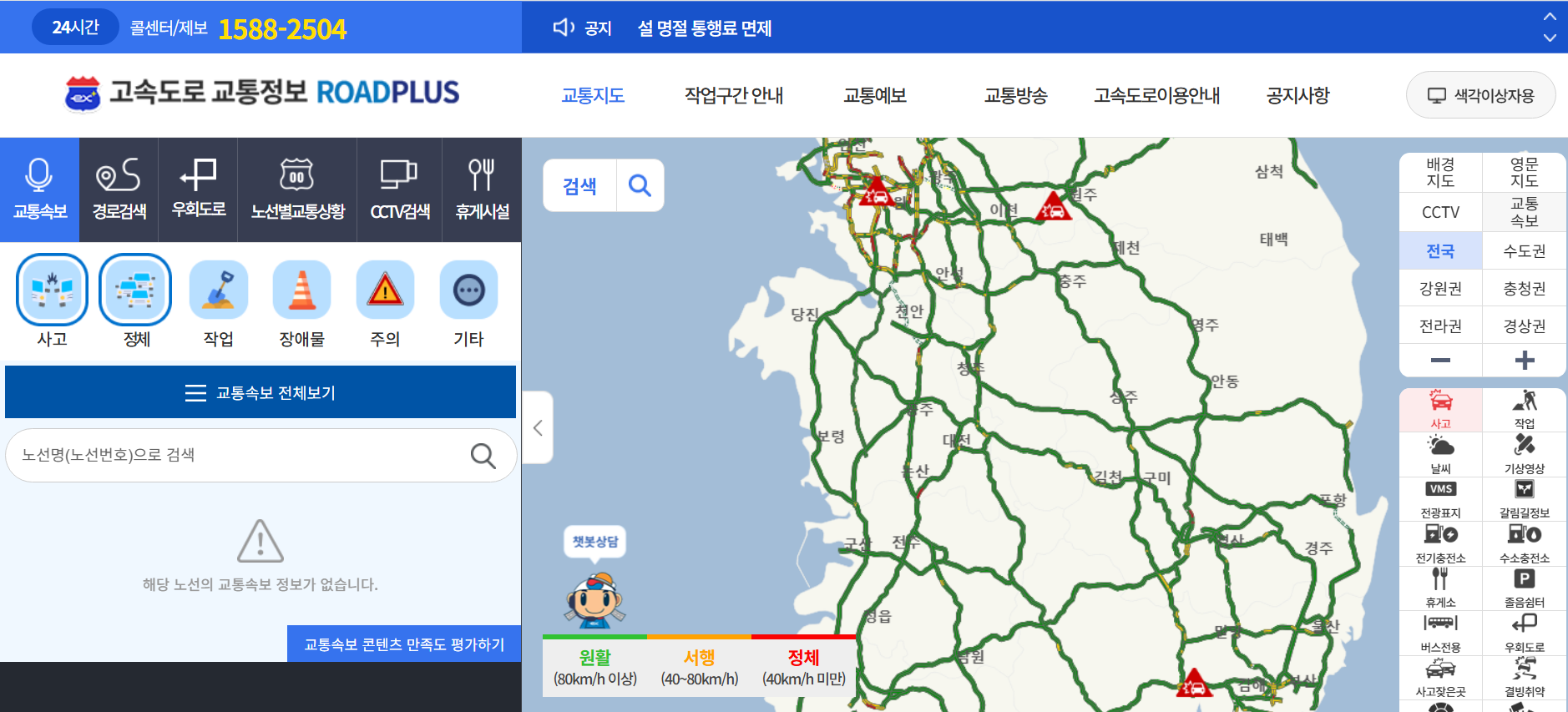 - 주요 고속도로 및 국도 CCTV 실시간 영상 확인 가능