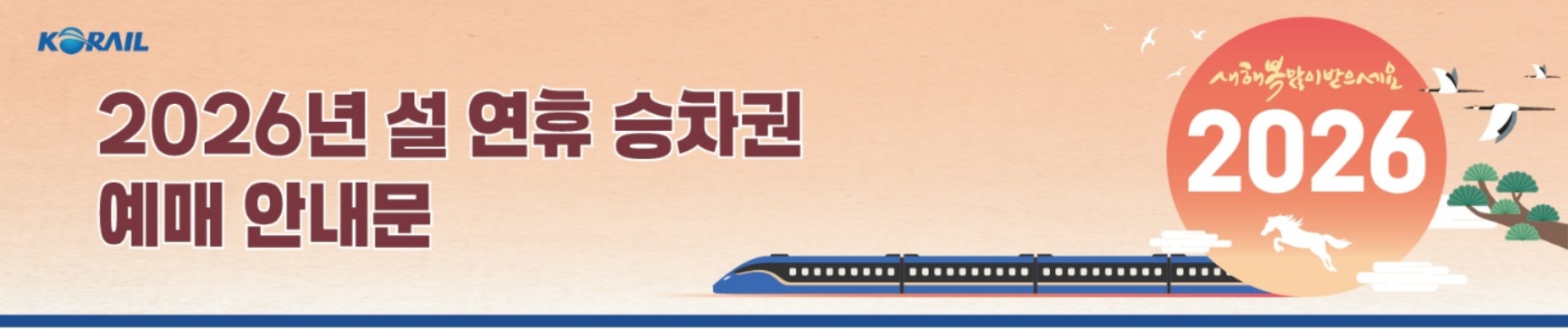 | 사전예매 | 2026년 1월 16일(금) | 09:00 ~ 15:00 | 호남 · 전라 · 중앙 · 강릉 · 장항 · 영동 · 태백 · 서해 · 경춘 · 목포보성선 |