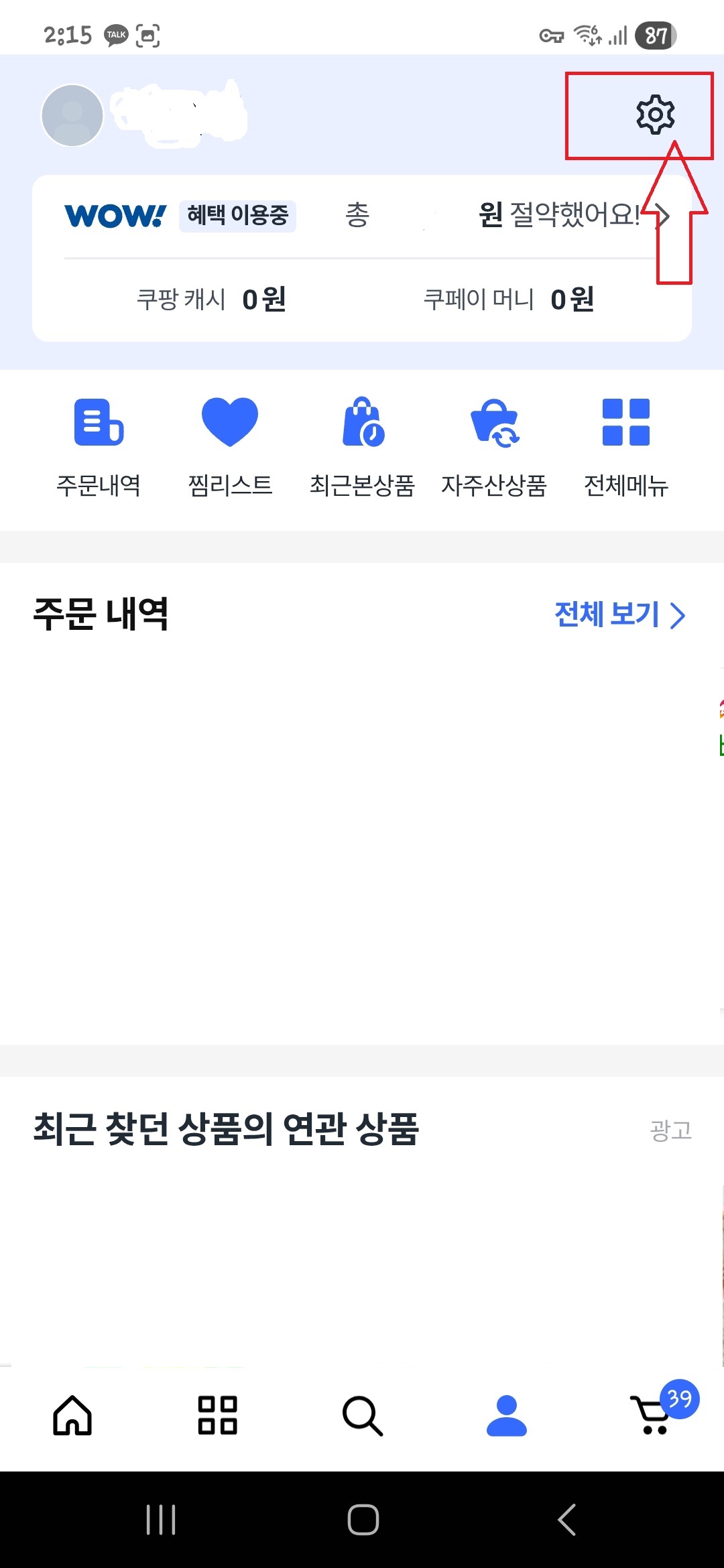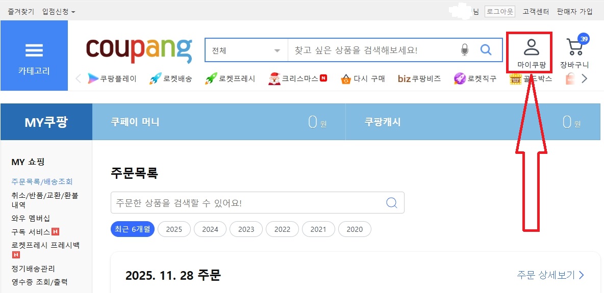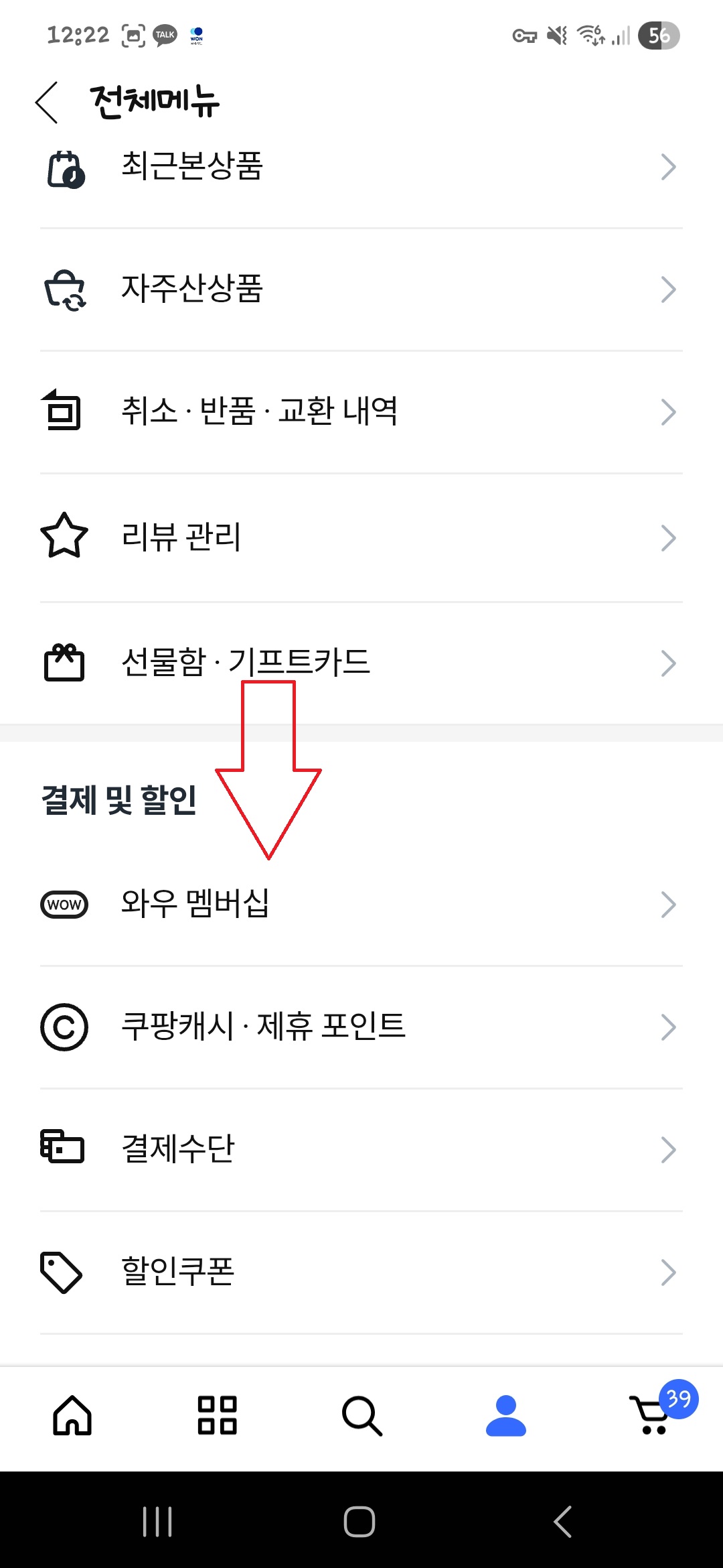 - 마이쿠팡 → 와우 멤버쉽